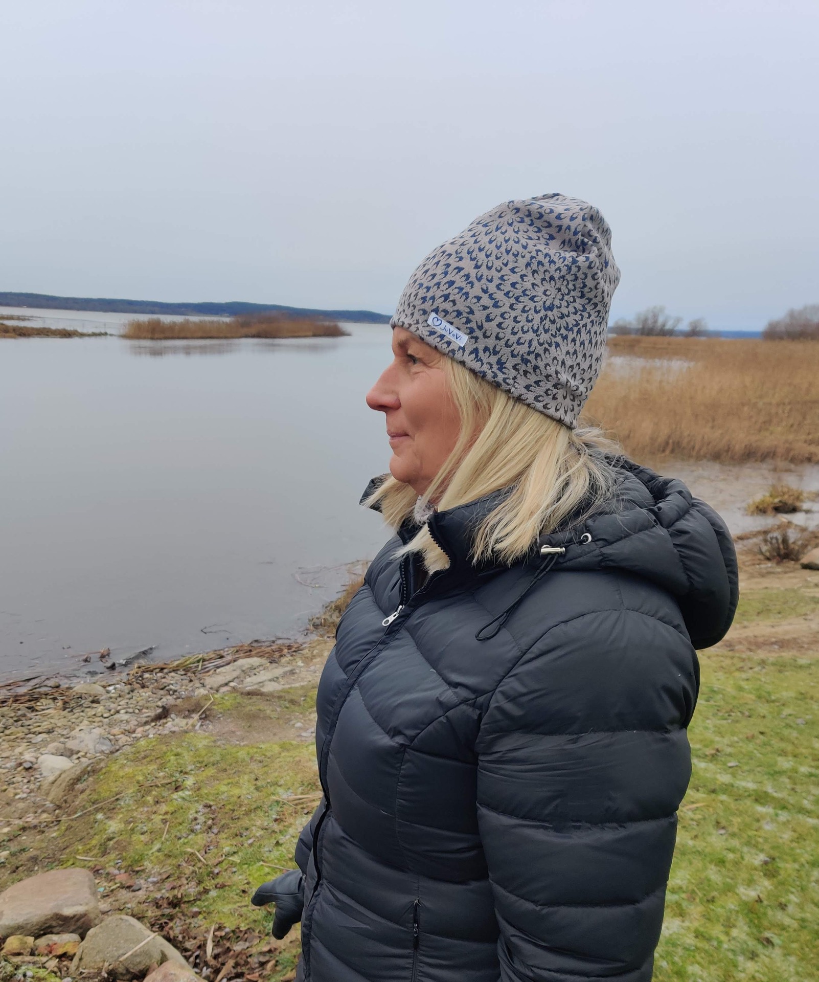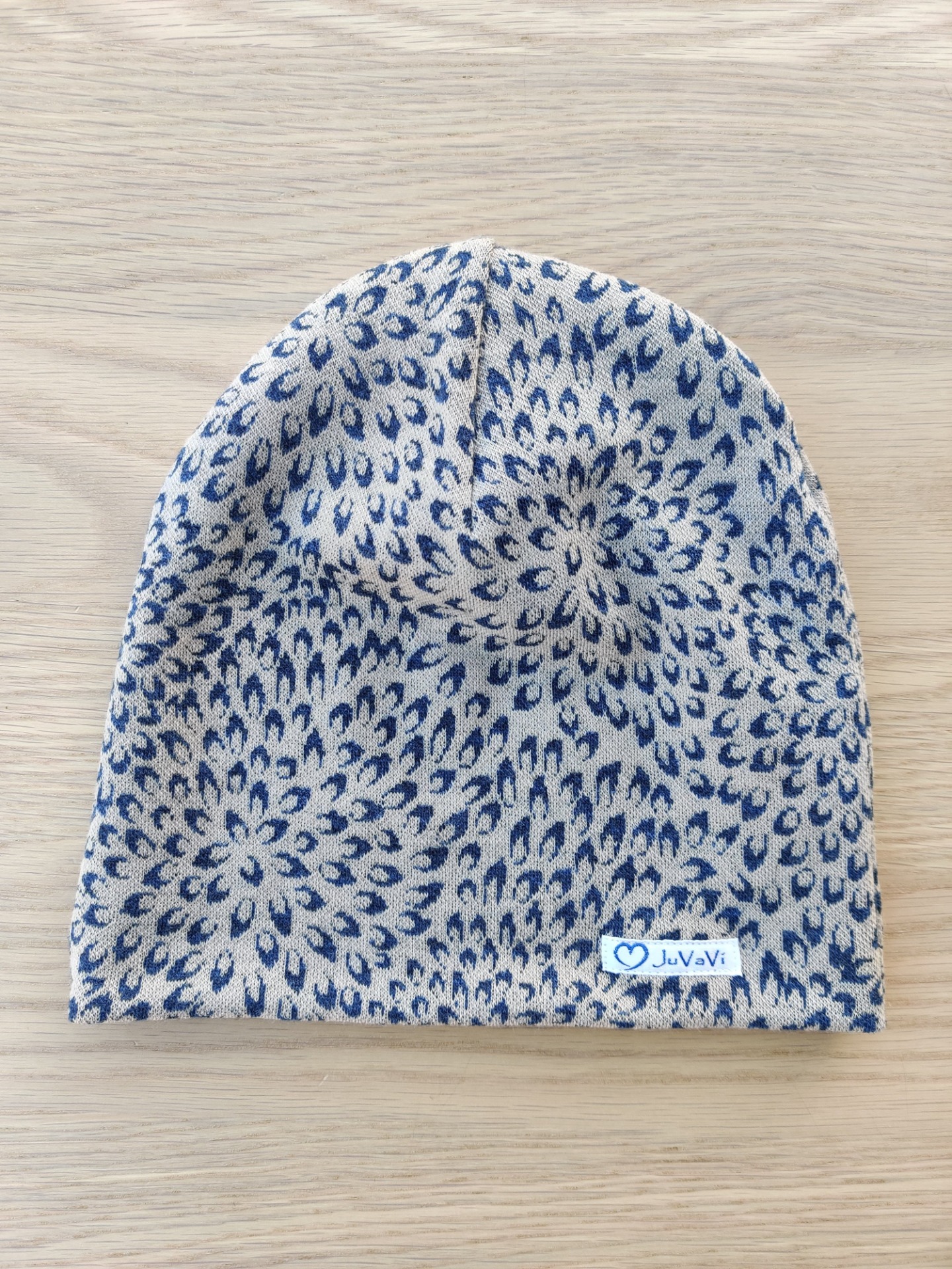 Merinoullmössa med blå droppar.