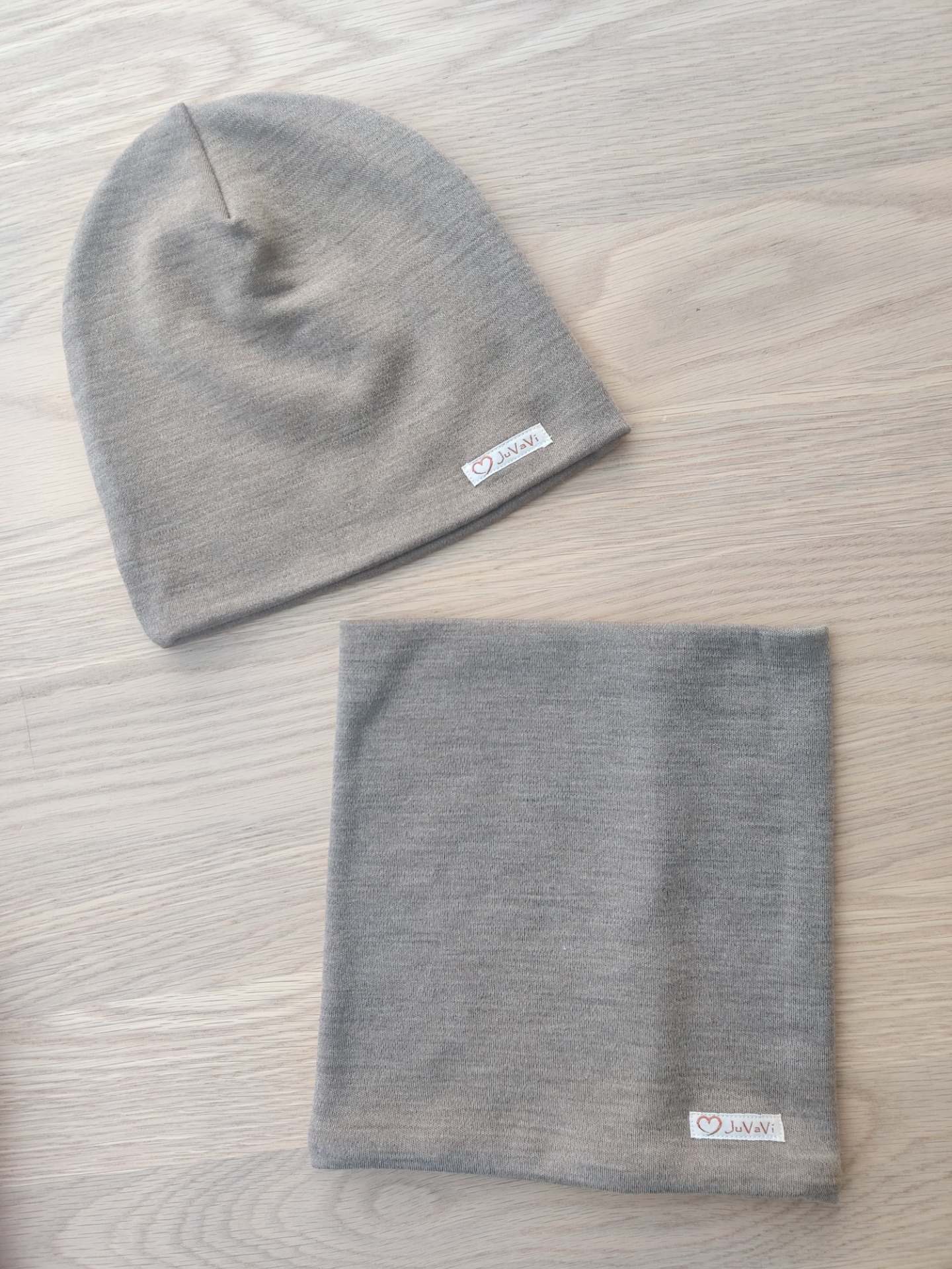 Merinoullset i nyansen taupe. Här i vuxenstorlek.