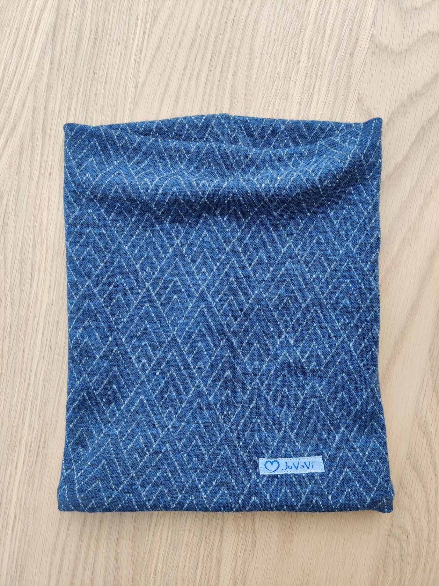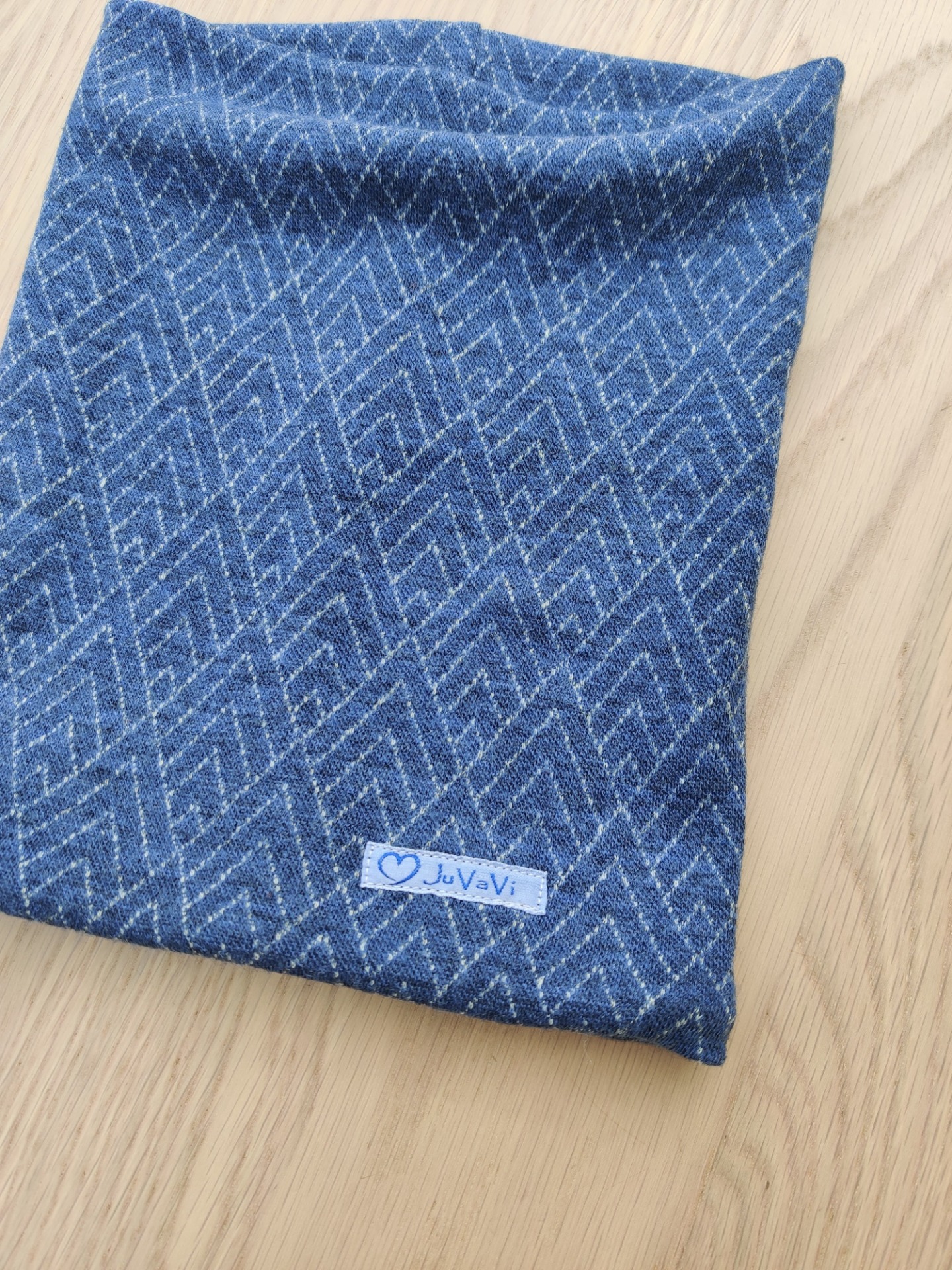 Vacker blåmönstrad buff i 100% merinoull i finaste kvalite.